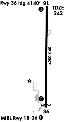 | Runway 18/36 | 4201 ft x 75 ft (1280 m x 23 m) | |